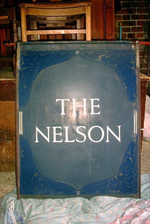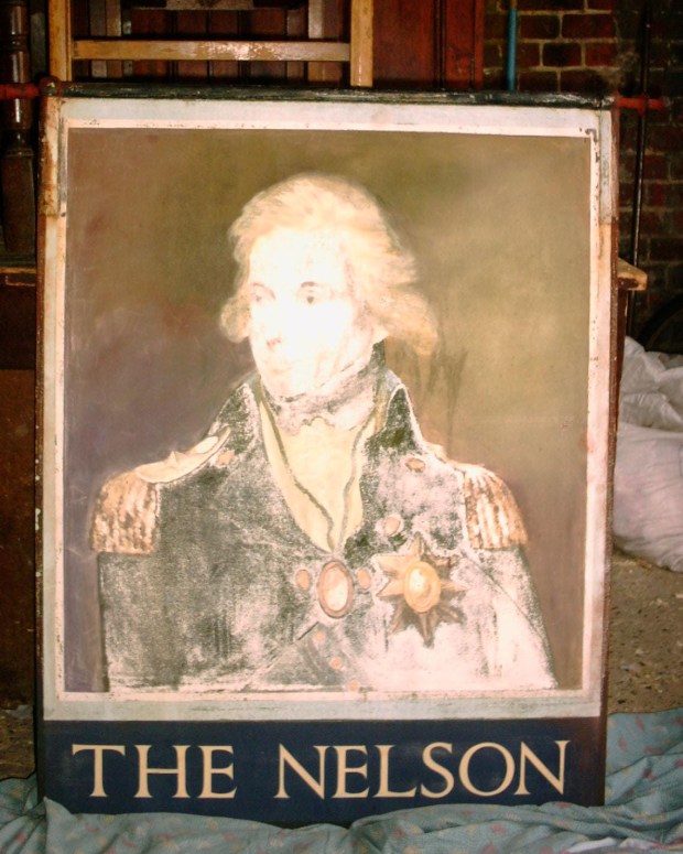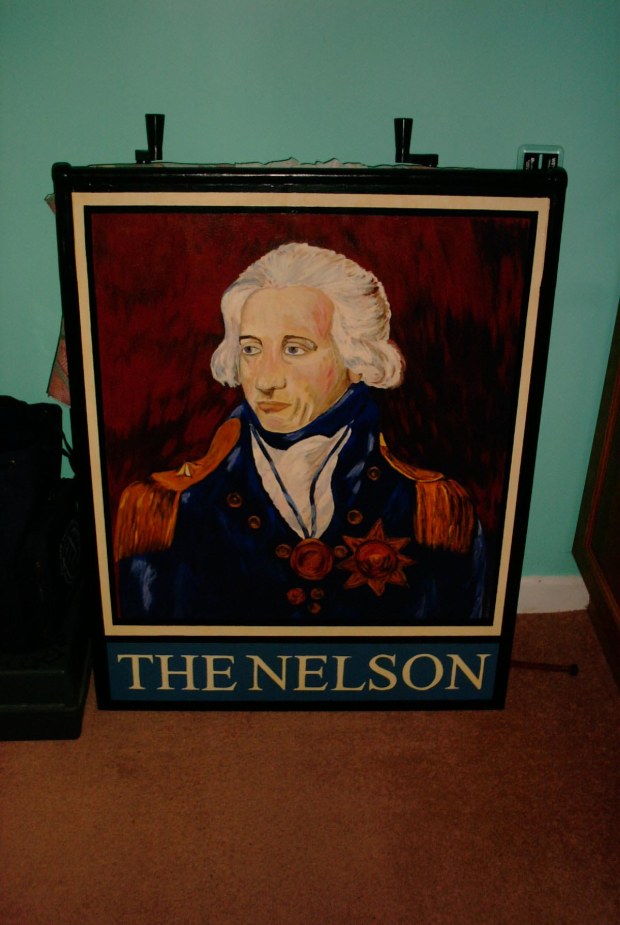 Refurbishment of existing pub sign. Art and Sign Writing with Acrylic and Eggshell/Gloss paints and yacht varnish. Copyright A. Lucas Collier 2022